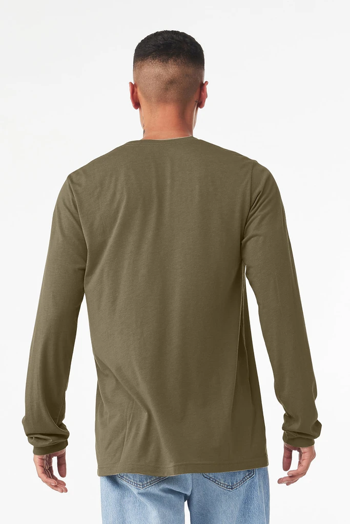 This classic unisex jersey t shirt fits like a well-loved favorite, featuring a classic crew neck, long sleeves and superior combed and ring-spun jersey cotton that acts as a blank canvas for printing.