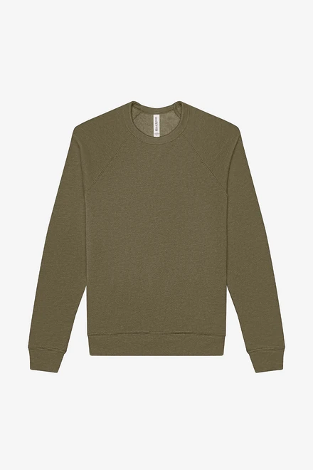 Material Solid Colors: 52% Airlume combed and ring-spun cotton, 48% polyester fleece, 32 single, 8 oz. Triblend Colors: 50% polyester fleece, 37.5% Airlume combed and ring-spun cotton, 12.5% rayon, 32 single, 8.2 oz. Heather Colors: 52% Airlume combed and ring