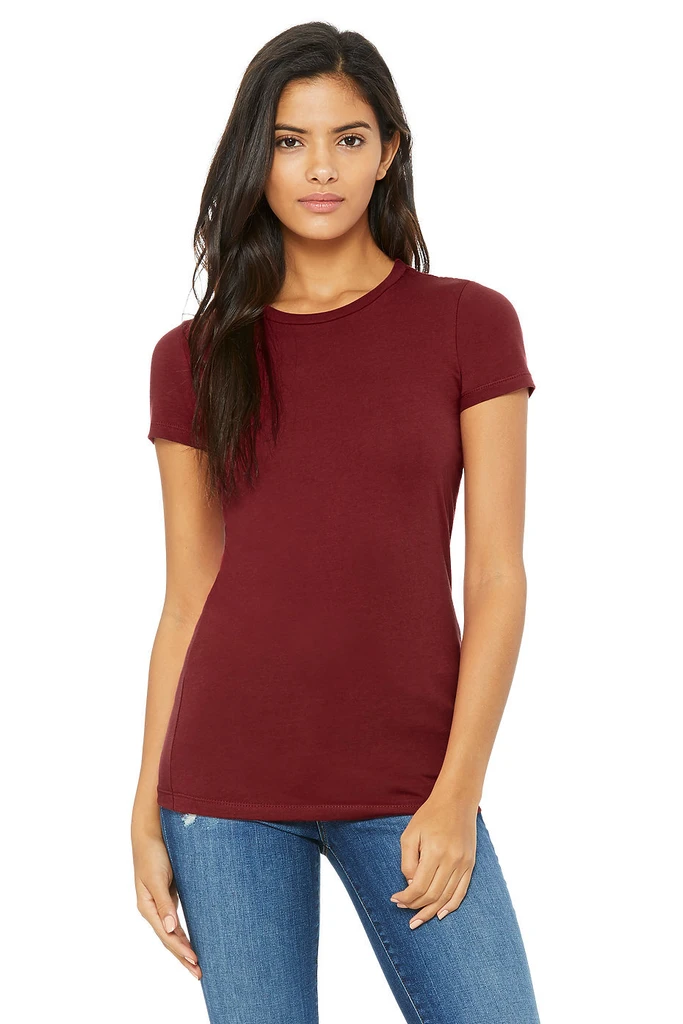 A popular t-shirt, it features a slim feminine fit, short sleeves and superior combed and ringspun cotton that acts as the best blank canvas for printing.