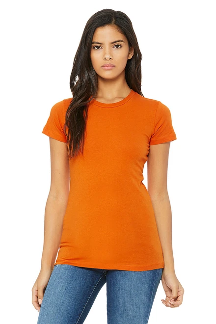 A popular t-shirt, it features a slim feminine fit, short sleeves and superior combed and ringspun cotton that acts as the best blank canvas for printing.