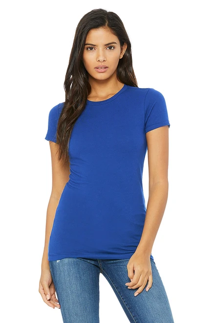 A popular t-shirt, it features a slim feminine fit, short sleeves and superior combed and ringspun cotton that acts as the best blank canvas for printing.