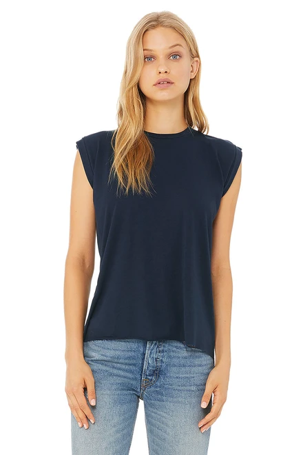 8804 Women's Flowy Muscle Tee With Rolled Cuff
