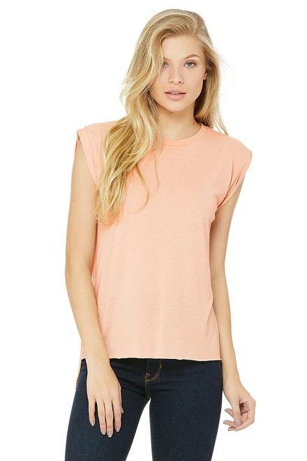 8804 Women's Flowy Muscle Tee With Rolled Cuff