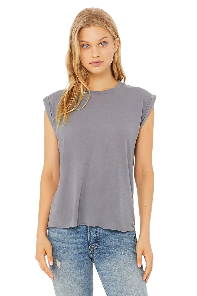 8804 Women's Flowy Muscle Tee With Rolled Cuff