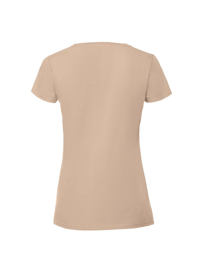 Material: 100% cotton; Heather Grey: 97% cotton, 3% polyester; Ash: 99% cotton, 1% polyester; Weight: 195gsm (white: 190gsm); 100% combed ringspun cotton, soft hand feel, shaped side seams for a feminine fit, performs at 60 degree wash, crew neck with cotton/ LYCRA® rib and twin needle stitching, self-fabric shoulder to shoulder taping; Certificates: STANDARD 100 by OEKO-TEX®; WRAP