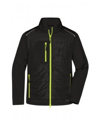 Easy-care 2-layer softshell fabric combined with stitched insets at the front and at the back