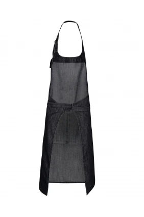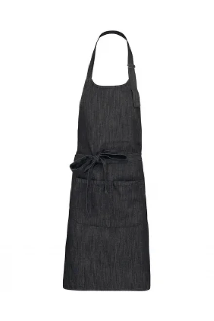 65% polyester / 35% cotton. Industrial laundry 85°C. Domestic wash 60°C. Self fabric neck tie with adjustable buckle. Large double pocket : Length 20 cm - Width 31.5 cm. Apron : Length 90 cm - Width 76 cm.
