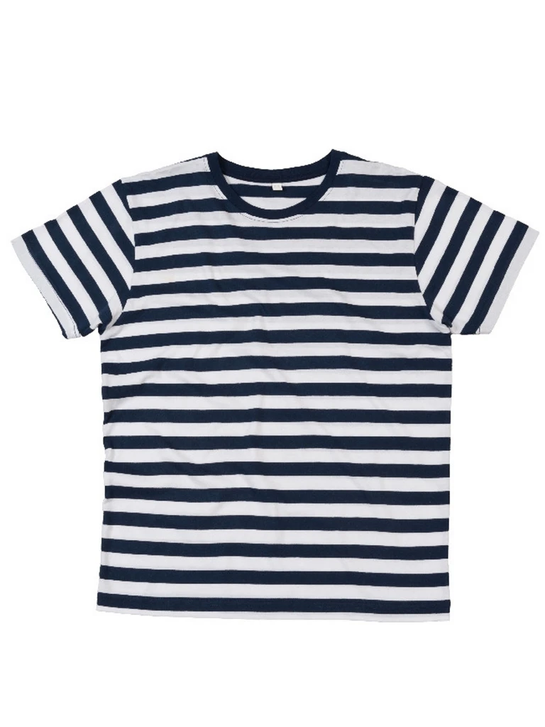 Yarn dyed stripe jersey fabric / 1×1 rib at neck / Twin needle stitching at hem and sleeve ends