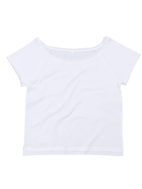 Organic Cotton / Loose fit / Raw edge at neck / Wide, off-shoulder neckline / Short, raw edge sleeves / Raglan styling / Side vents at hem / Tear-off label