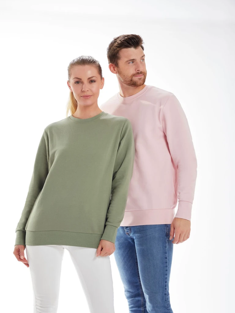 Material 80% (Organic or in Conversion to Organic) Cotton; 20% Recycled Polyester (rPET) Heather Grey Melange: 71% (Organic or in Conversion to Organic) Cotton, 21% Recycled Polyester (rPET), 8% Viscose 280gsm, French Terry
