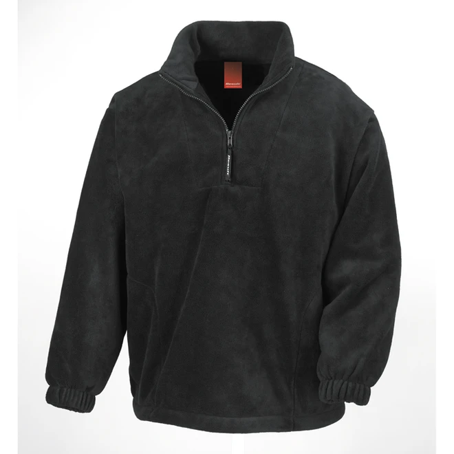 330 gsm • 100% polyester • antipilling • 1/4 Zip • stand up collar with zip • open side pockets • elasticated cuffs