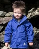 280 gsm • 100 % polyester • one side waterproof PVC-coated • hood in collar (with zip) • 2-way full zip • polyester side also has windproof button placket • elasticated cuffs • zipped side pockets • press stud opening in seam for decoration.