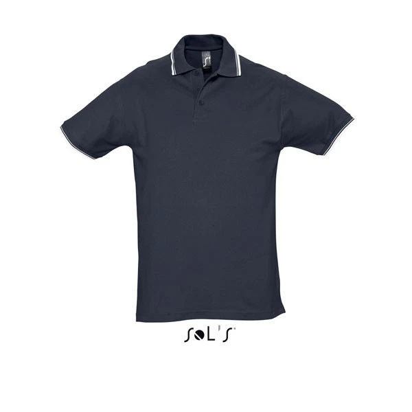 QUALITY: 270 PIQUÉ, 100% combed Ringspun cotton; Rib collar and cuffs, Reinforcing tape on neck, short sleeves, contrasting striped collar and cuffs, 3 tone on tone buttons. Straight hem with contrasted side slits, Cut and sewn, Spare button on the inside seam; Certificate: STANDARD 100 by OEKO-TEX®