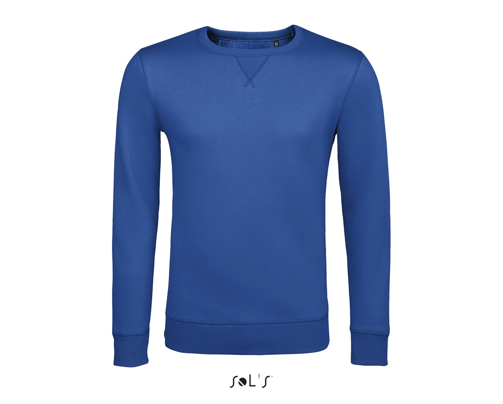 QUALITY: LSF (Low Shrinkage Fabric) FLEECE 280 - 80% ringspun cotton, 20% polyester, Brushed lining, Outside: 100% cotton; Crewneck with stitched V-detail, 2x2 ribbed cuffs, collar and hem, Set-in sleeves, Cut and sewn, Half moon inside collar