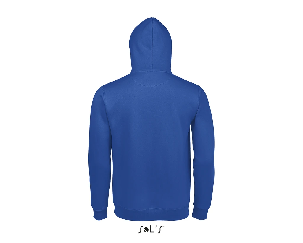QUALITY: FLEECE 280 LSF (Low Shrinkage Fabric), 80% ringspun cotton, 20% polyester, Brushed lining, Outside: 100% cotton; Set-in sleeves, Front pouch pocket, Cut and sewn, Lined hood with drawcord, 2x2 ribbed cuffs and hem, Half moon inside collar, Taped neck; Certificate: STANDARD 100 by OEKO-TEX®