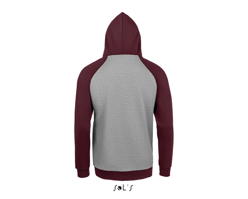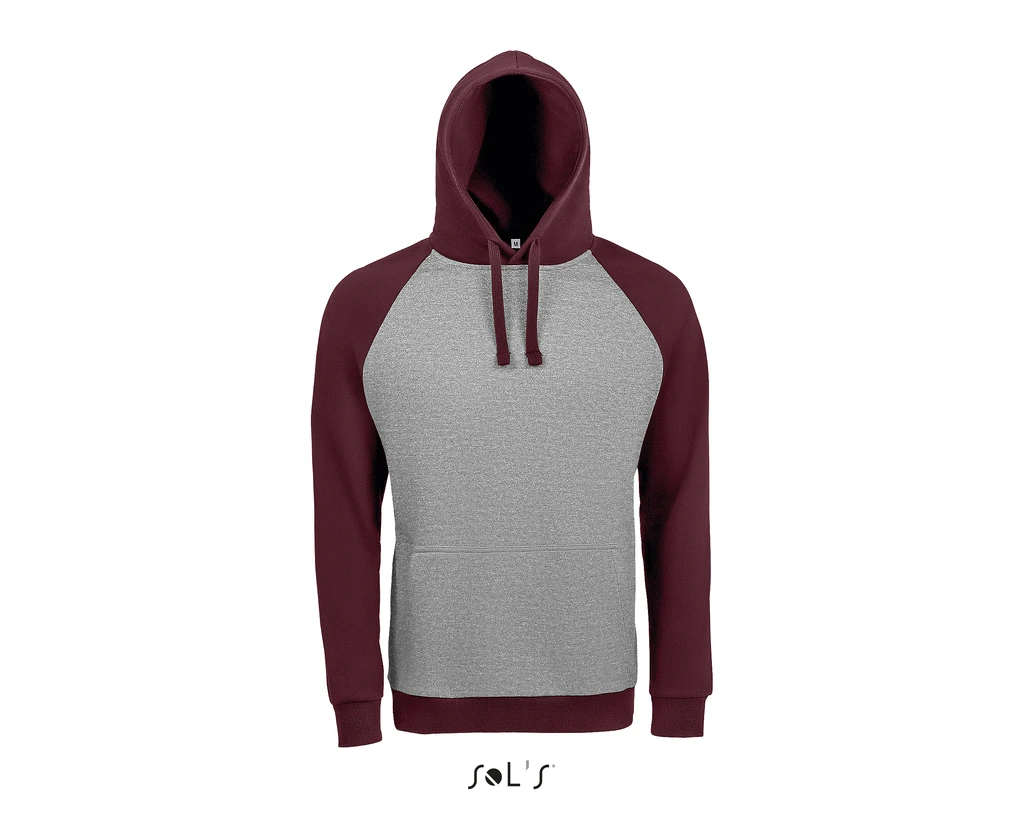 QUALITY: MOLTON 280 TECHNOLOGIE LSF (Low Shrinkage Fabric), 80% ringspun cotton, 20% polyester, brushed inside, Outside: 100% cotton; Two-coloured, Raglan sleeves, Front pouch pocket, Ribbed cuffs and bottom, Lined hood with drawstring to adjust it, taped neck; Certificate: STANDARD 100 by OEKO-TEX®