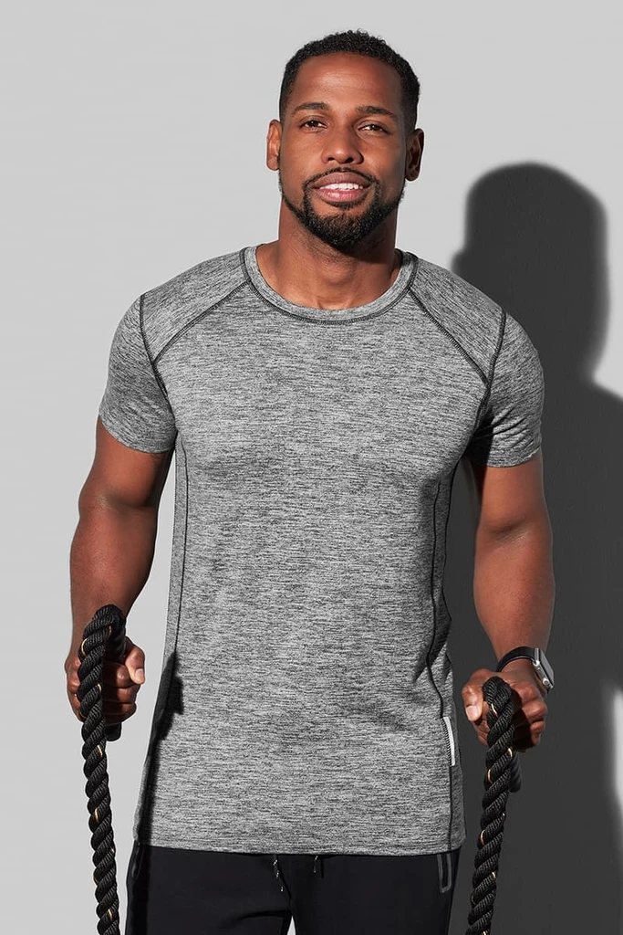 Material: 90% ACTIVE-DRY° polyester (50% recycled), 10% elastane; Weight: 190gsm; Eco-friendly functional fabric, made from recycled plastic bottles (4 per T-shirt), ACTIVE-DRY°: quick-drying, moisture-wicking and breathable material, heathered look, reflecting tape (front and back) for great visibility, contrast flatlock seams, self-fabric collar, side seams, premium woven size label in the collar, tear-away care label in the side seam, washable at 40°C; Certificate: STANDARD 100 by OEKO-TEX®