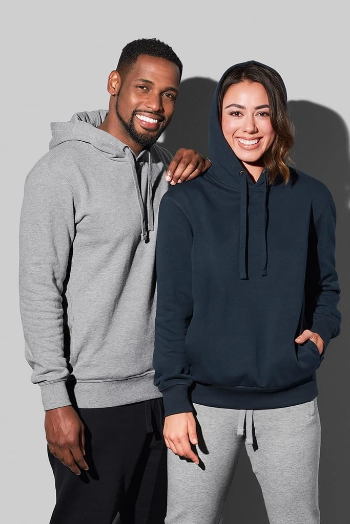 Material: 80% ring-spun cotton, 20% recycled polyester (GYH: 70% cotton, 30% recycled polyester); Weight: 280 gsm; Eco-friendly functional fabric, made from recycled plastic bottles (6 per hoodie), front surface fully printable despite side pockets, unisex style – great for both men and women, matching pants available, 100% cotton surface, brushed inside, side seam pockets (not sewn into waistband for full-surface decoration), double fabric hood with tone-on-tone drawcord, metal eyelets for drawcord (nickel-free), wide rib cuffs and waistband, neck tape, side seams, premium woven size label in the collar, tear-away care label in the side seam, washable at 40°C; Certificate: STANDARD 100 by OEKO-TEX®