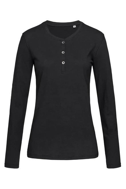Material: 100% ring-spun cotton, slub yarn; single jersey; Weight: 140 gsm; Slub yarn for a texturised look, zigzag stitches on seams, rib collar, 3 metal buttons (nickel-free), narrow placket, neck tape, side seams, small size label in the collar, care label in the side seam, washable at 40°C; Certificate: STANDARD 100 by OEKO-TEX®