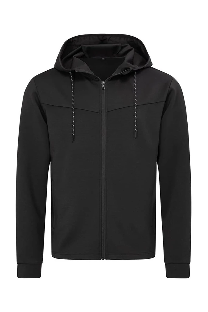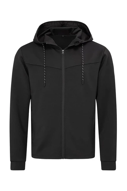 Material: BLO: 94% polyester (24% recycled), 6% elastane; ANH: 81% polyester (28% recycled), 13% viscose, 6% elastane; Weight: 300gsm; Eco-friendly functional fabric, made from recycled plastic bottles (8 per jacket), metal eyelets for drawcord (nickel-free), scuba hood with elastic binding and 2-colour drawcord, 2 side pockets with hidden zippers, zipper with metal puller (nickel-free), decorative flatlock seams, self-fabric cuffs, neck tape, side seams, premium woven size label in the collar, tear-away care label in the side seam, washable at 40°C; Certificate: STANDARD 100 by OEKO-TEX®