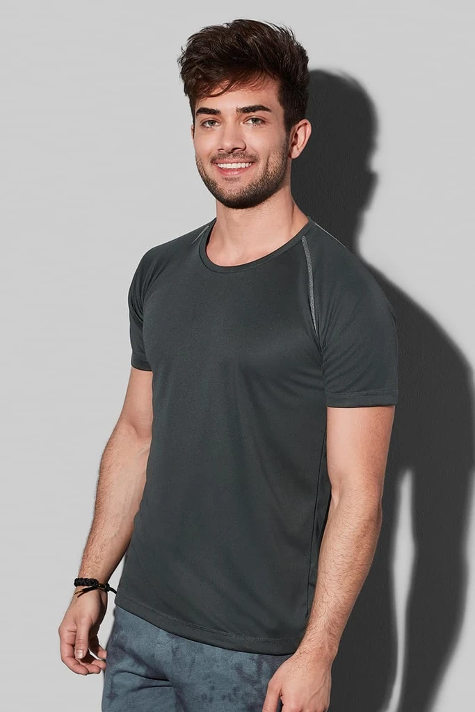 Material: 100% ACTIVE-DRY° polyester; sleek mesh; Weight: 140 gsm; stretchy fabric, sleek surface, quick-drying, breathable mesh-material, raglan sleeves, excellent freedom of movement contrast seams and contrast neck tape, decorative flatlock seams, side seams, small size label in the collar, care label in the side seam; Certificate: STANDARD 100 by OEKO-TEX®