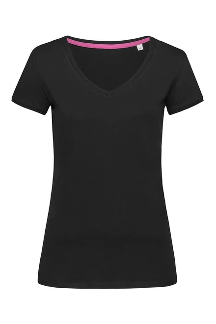 Material: 100% ring-spun combed cotton; single jersey (GYH: 85% cotton, 15% viscose); Weight: 145gsm; Body-fit cut with slim rib collar, high-quality combed cotton, no label in collar, slim rib collar, wide neck drop, fashionable short sleeves with slim rib cuffs, contrast neck tape, side seams, small size label in the collar, care label in the side seam, washable at 40°C; Certificate: STANDARD 100 by OEKO-TEX®