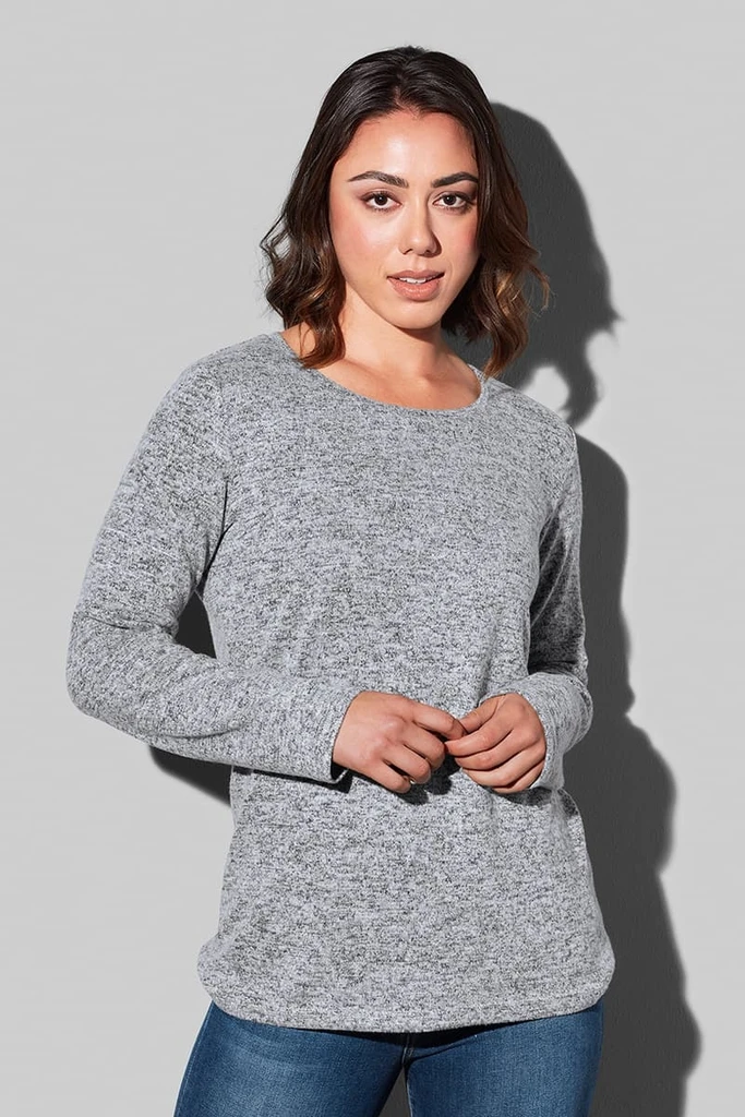 Material: 58% polyester, 37% viscose, 5% elastane; Weight: 210gsm; Soft knit fabric with viscose, fashionable loose shape, brushed outside, self-fabric collar, neck tape, side seams, small size label in the collar, care label in the side seam; Certificate: STANDARD 100 by OEKO-TEX®