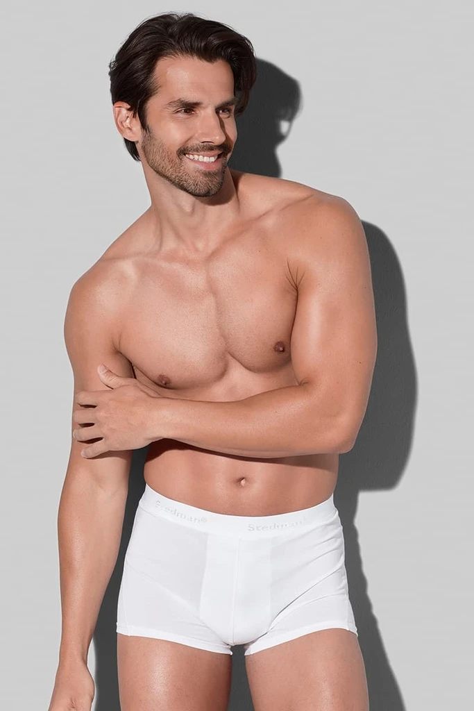 Material: 92% ring-spun combed cotton, 8% elastane; single jersey "full feeder"; Weight: 195gsm; Stretchy, combed cotton with elastane, elastic waistband, 2-pack, elastic waistband with "Stedman" wordmark, washable at 40°C; Certificate: STANDARD 100 by OEKO-TEX®