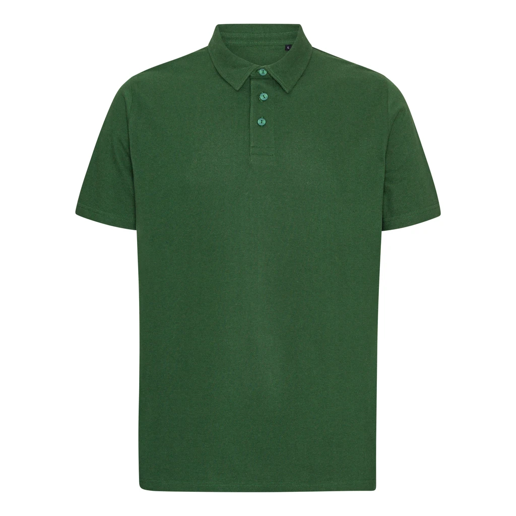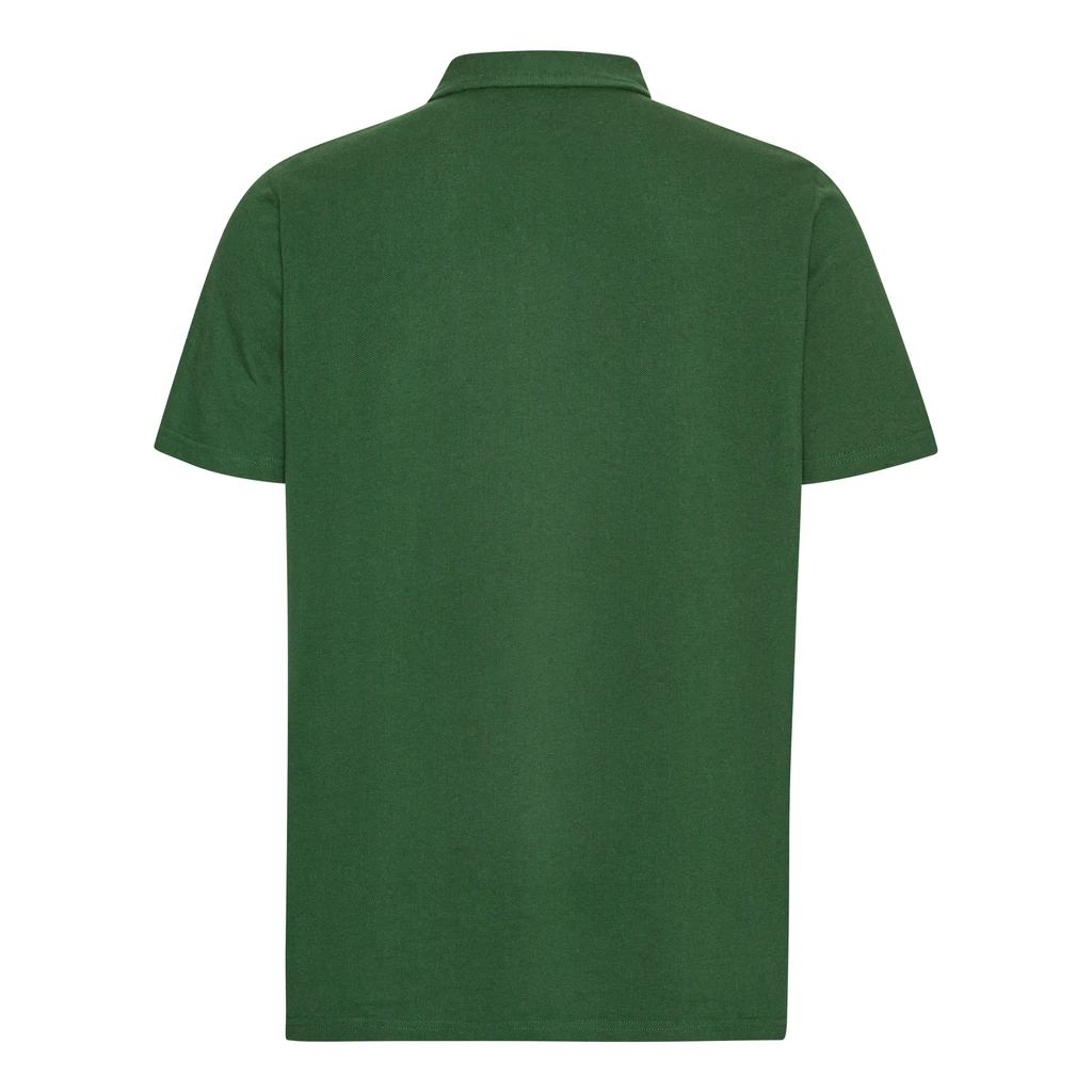 Classic tailored Polo Shirt with slightly fitted short sleeves and front placket with buttons made from pressed waste cotton. Features a flat-knitted collar and sleeve cuffs, small slit detail at sides and double-stitched finish at sleeve and bottom hem. Body fabric made from piqué knitted 235gsm combed cotton.