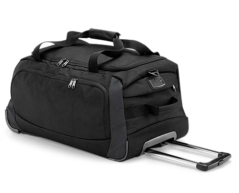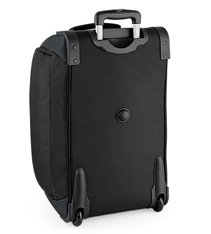 Detachable adjustable shoulder strap with pad, retractable twin tube locking tow handle, durable integrated skate wheels, multiple internal pockets, zippered side pocket, zippered front pocket, haul handle, padded handles, padded hand grip, covered name card holder; Dimensions: 65 x 36 x 33 cm; Capacity: 65 litres
