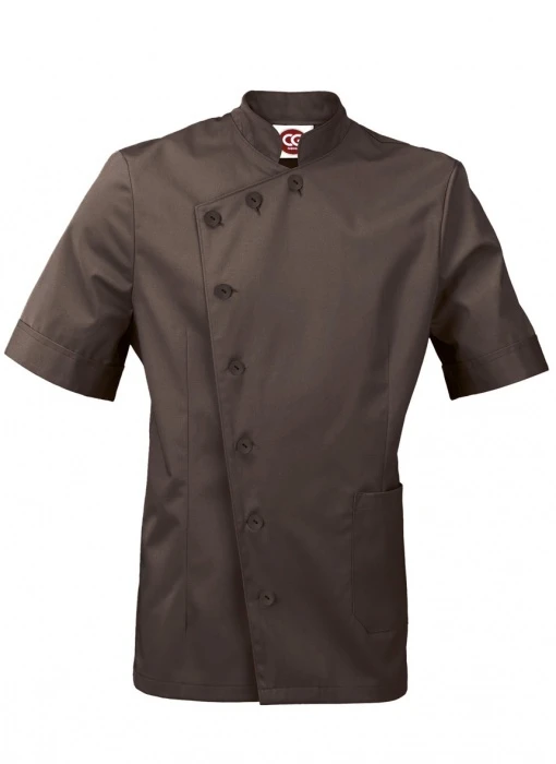 Tailored tunic with short sleeves and mandarin collar. The diagonally cut lapels that can be fastened with buttons are especially smart. The tunic has a side vent as well as a rear pleat for greater mobility. The high quality stretch fabric is very comfortable and easy to care for. Even when washed at 95°C the shape, colours and wear comfort remain unaltered.