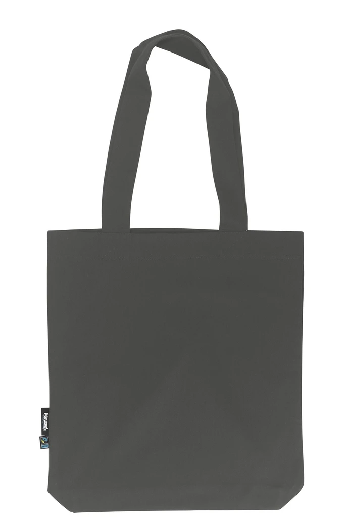 Material: 100% Organic Fairtrade Cotton, twill Weave; Weight: 210gsm; Heavy Twill Weave. Long handles, Bottom gusset. Reinforced at stress points. Sizes: 38 x 42 cm /handles 66cm; Neutral® & Fairtrade flaglabels at side; Certificates: OEKO-TEX® STANDARD 100, 100% CERTIFIED ORGANIC COTTON, FAIR WEAR, EU ECOLABEL, SA8000, NEUTRAL® RESPONSIBILITY