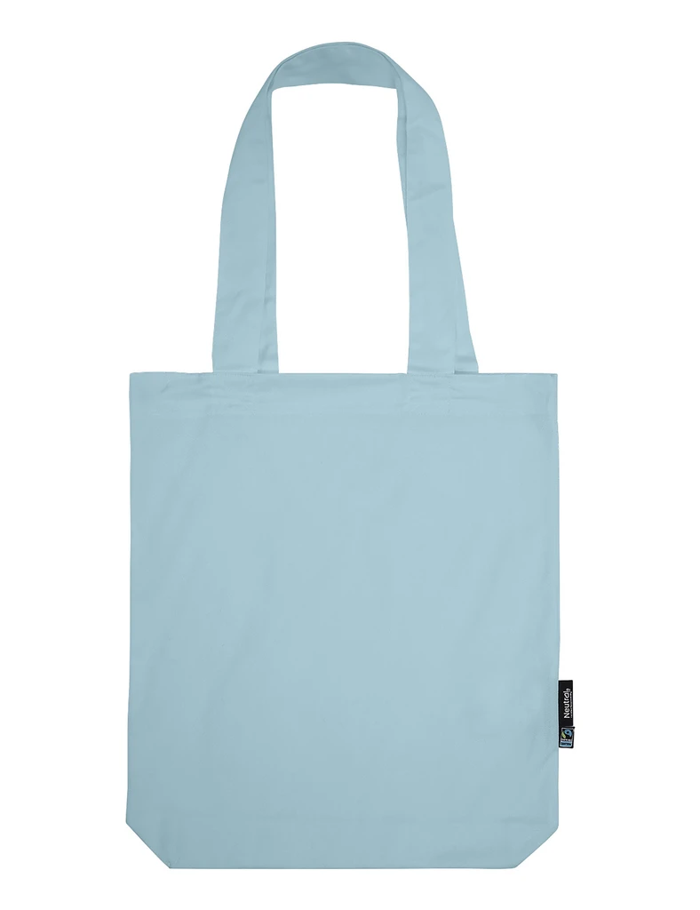 Material: 100% Organic Fairtrade Cotton, twill Weave; Weight: 210gsm; Heavy Twill Weave. Long handles, Bottom gusset. Reinforced at stress points. Sizes: 38 x 42 cm /handles 66cm; Neutral® & Fairtrade flaglabels at side; Certificates: OEKO-TEX® STANDARD 100, 100% CERTIFIED ORGANIC COTTON, FAIR WEAR, EU ECOLABEL, SA8000, NEUTRAL® RESPONSIBILITY
