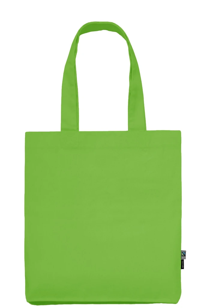 Material: 100% Organic Fairtrade Cotton, twill Weave; Weight: 210gsm; Heavy Twill Weave. Long handles, Bottom gusset. Reinforced at stress points. Sizes: 38 x 42 cm /handles 66cm; Neutral® & Fairtrade flaglabels at side; Certificates: OEKO-TEX® STANDARD 100, 100% CERTIFIED ORGANIC COTTON, FAIR WEAR, EU ECOLABEL, SA8000, NEUTRAL® RESPONSIBILITY
