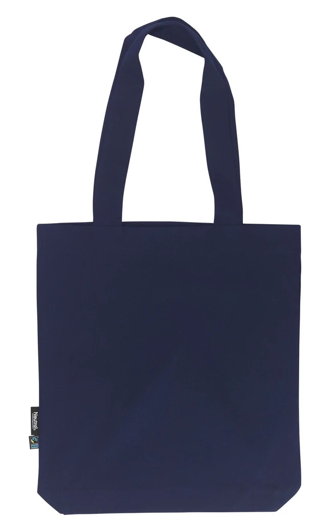 Material: 100% Organic Fairtrade Cotton, twill Weave; Weight: 210gsm; Heavy Twill Weave. Long handles, Bottom gusset. Reinforced at stress points. Sizes: 38 x 42 cm /handles 66cm; Neutral® & Fairtrade flaglabels at side; Certificates: OEKO-TEX® STANDARD 100, 100% CERTIFIED ORGANIC COTTON, FAIR WEAR, EU ECOLABEL, SA8000, NEUTRAL® RESPONSIBILITY