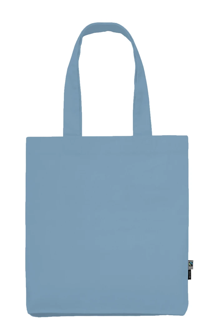 Material: 100% Organic Fairtrade Cotton, twill Weave; Weight: 210gsm; Heavy Twill Weave. Long handles, Bottom gusset. Reinforced at stress points. Sizes: 38 x 42 cm /handles 66cm; Neutral® & Fairtrade flaglabels at side; Certificates: OEKO-TEX® STANDARD 100, 100% CERTIFIED ORGANIC COTTON, FAIR WEAR, EU ECOLABEL, SA8000, NEUTRAL® RESPONSIBILITY