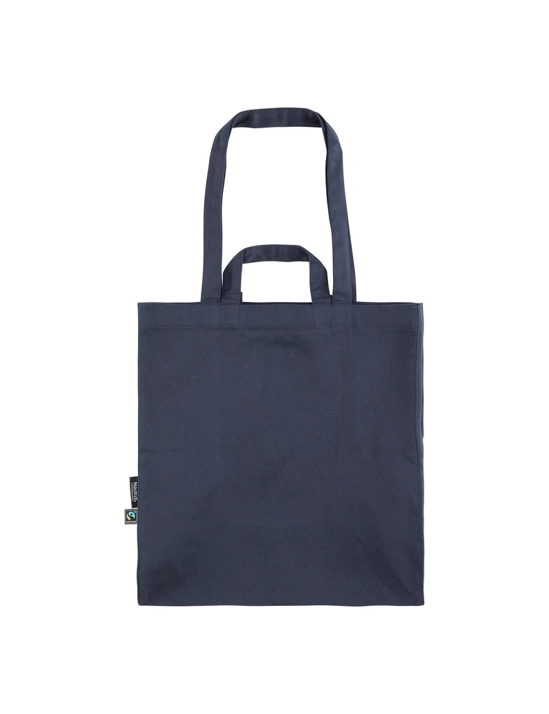 Material: 100% Organic Fairtrade Cotton, twill Weave; Weight: 210gsm; Heavy Twill Weave. Long & short handles (60 cm; 24cm. Bottom & side gusset. Reinforced at stress points. Sizes: 35 x 38 cm; Neutral® & Fairtrade flaglabels at side; Certificates: OEKO-TEX® STANDARD 100, 100% CERTIFIED ORGANIC COTTON, FAIR WEAR, EU ECOLABEL, SA8000, NEUTRAL® RESPONSIBILITY