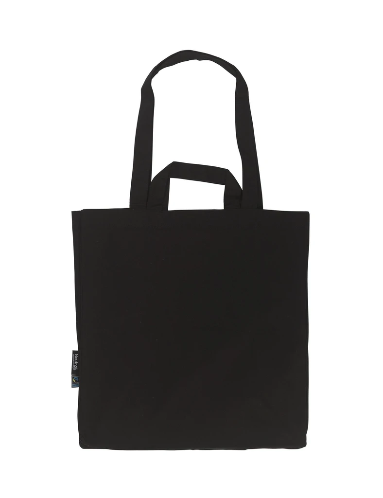 Material: 100% Organic Fairtrade Cotton, twill Weave; Weight: 210gsm; Heavy Twill Weave. Long & short handles (60 cm; 24cm. Bottom & side gusset. Reinforced at stress points. Sizes: 35 x 38 cm; Neutral® & Fairtrade flaglabels at side; Certificates: OEKO-TEX® STANDARD 100, 100% CERTIFIED ORGANIC COTTON, FAIR WEAR, EU ECOLABEL, SA8000, NEUTRAL® RESPONSIBILITY