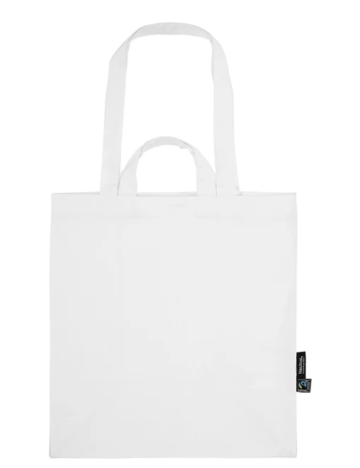 Material: 100% Organic Fairtrade Cotton, twill Weave; Weight: 210gsm; Heavy Twill Weave. Long & short handles (60 cm; 24cm. Bottom & side gusset. Reinforced at stress points. Sizes: 35 x 38 cm; Neutral® & Fairtrade flaglabels at side; Certificates: OEKO-TEX® STANDARD 100, 100% CERTIFIED ORGANIC COTTON, FAIR WEAR, EU ECOLABEL, SA8000, NEUTRAL® RESPONSIBILITY