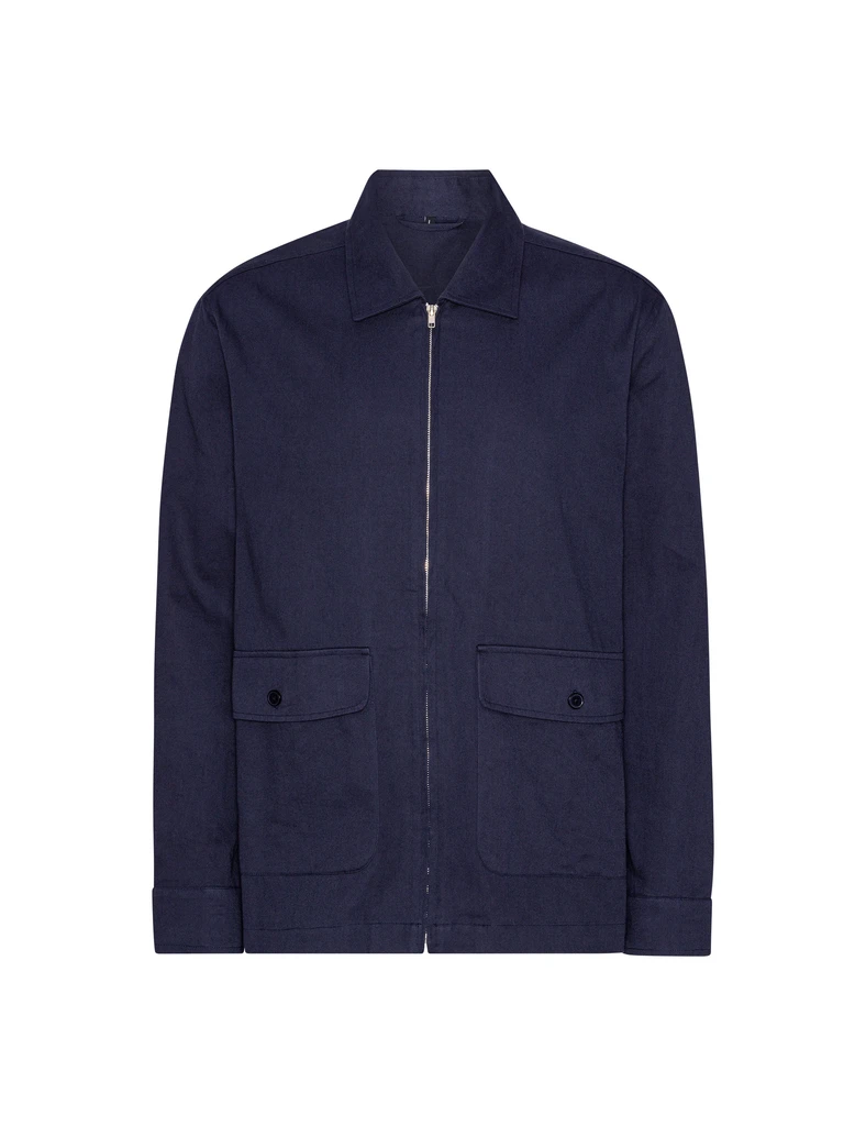 Stylish workwear jacket in a relaxed fit. This lightweight single layer jacket is perfect for spring, summer and early autumn, or as the perfect all year carcoat. It is constructed with two practical front pockets with button closure. The buttons are made from recycled cotton waste, and the jacket zip closure ia a high quality YKK zipper. The jacket is topped with a great fitting collar.