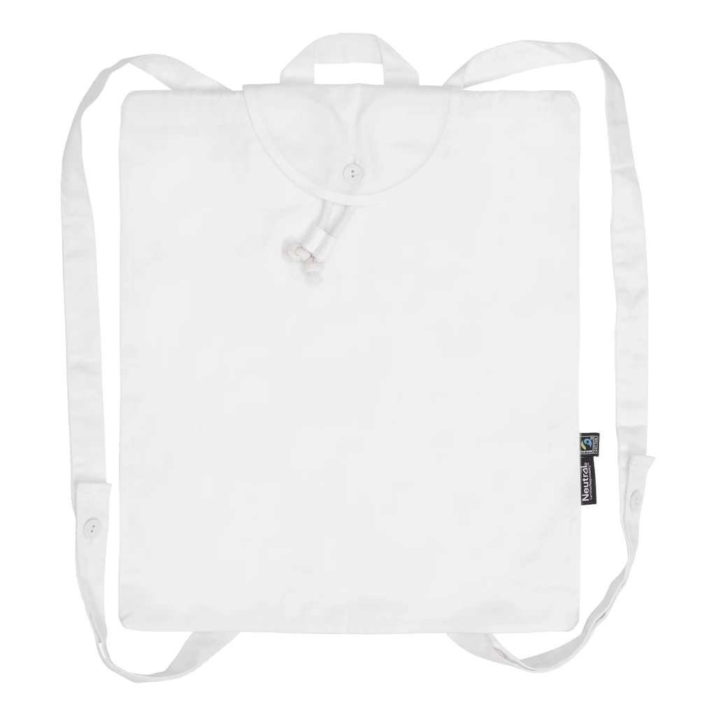Backpack in twill weave with cotton buttons at straps. Completed with Neutral® and Fairtrade flag labels at side. Available in six colours.