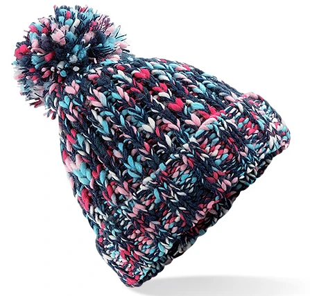 TearAway label for ease of rebranding, Heavyweight multi yarn cable knit design, Hand-knitted feel, Luxury pom pom, Luxurious Shearling thermal band for extra warmth, Cuffed design for optimal decoration