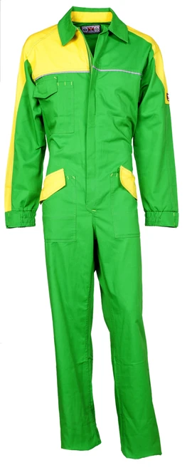 Two-tone overalls, front closing with zip, elasticated cuffs and button cuff fastening, two front LOCK SYSTEM pockets reinforced at the bottom, one roomy multi-function breast pocket, smartphone pocket and foldaway badge holder, two back pockets, one with flap and one with two reflective stripes, reflex piping on the chest and back, back elastic and pleat for greater ease of movement