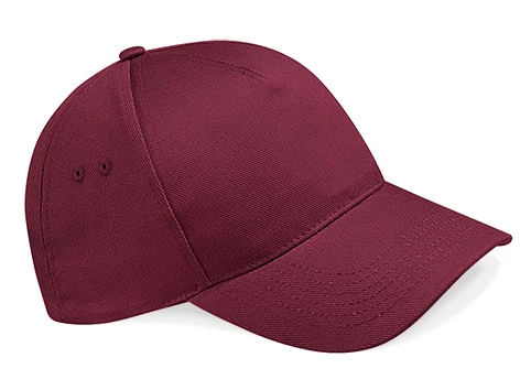 5 panel design, pre-curved peak, stitched ventilation eyelets, perfect for print and embroidery, Rip-Strip™ size adjuster