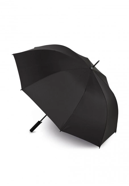 25" (63.5 cm) umbrella, auto opening, black metal pole 10 mm, fibreglass frame with plastic polypropylene tips, polyester 190T canopy, handle in rubber with polypropylene coating. 2 options for doming decoration access on handle. Ø 108 cm