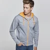 Non brushed fleece jacket with details in fluor colour. Central zip with puller to contrast. Hood with lining in microperforated polyester fabric in contrasting fluor colour and drawstring and contrasting metal eyelets in fluor colour. Long sleeves with cuff and waist rib 1x1. Two front pockets with wide trim. Reinforced covered seams in neck.