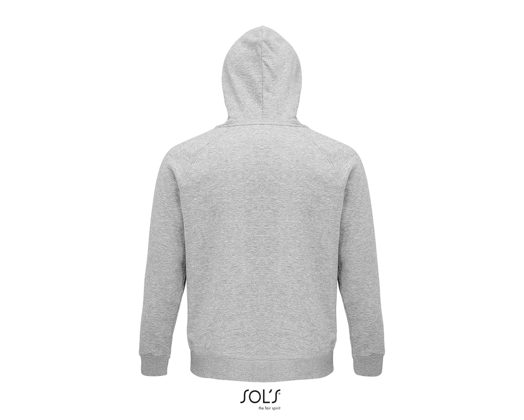 Material: FLEECE 280 - 80% organically grown cotton - 20% recycled polyester, 3 yarns, brushed lining, outside: 100% organic cotton; Cut and sewn, Raglan sleeves, 2x2 ribbed cuffs and hem, half moon inside collar, neck tape, drawstring with metal eyelets and stoppers, Jersey lined hood