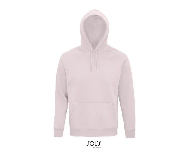 Material: FLEECE 280 - 80% organically grown cotton - 20% recycled polyester, 3 yarns, brushed lining, outside: 100% organic cotton; Cut and sewn, Raglan sleeves, 2x2 ribbed cuffs and hem, half moon inside collar, neck tape, drawstring with metal eyelets and stoppers, Jersey lined hood