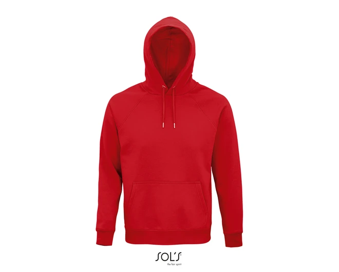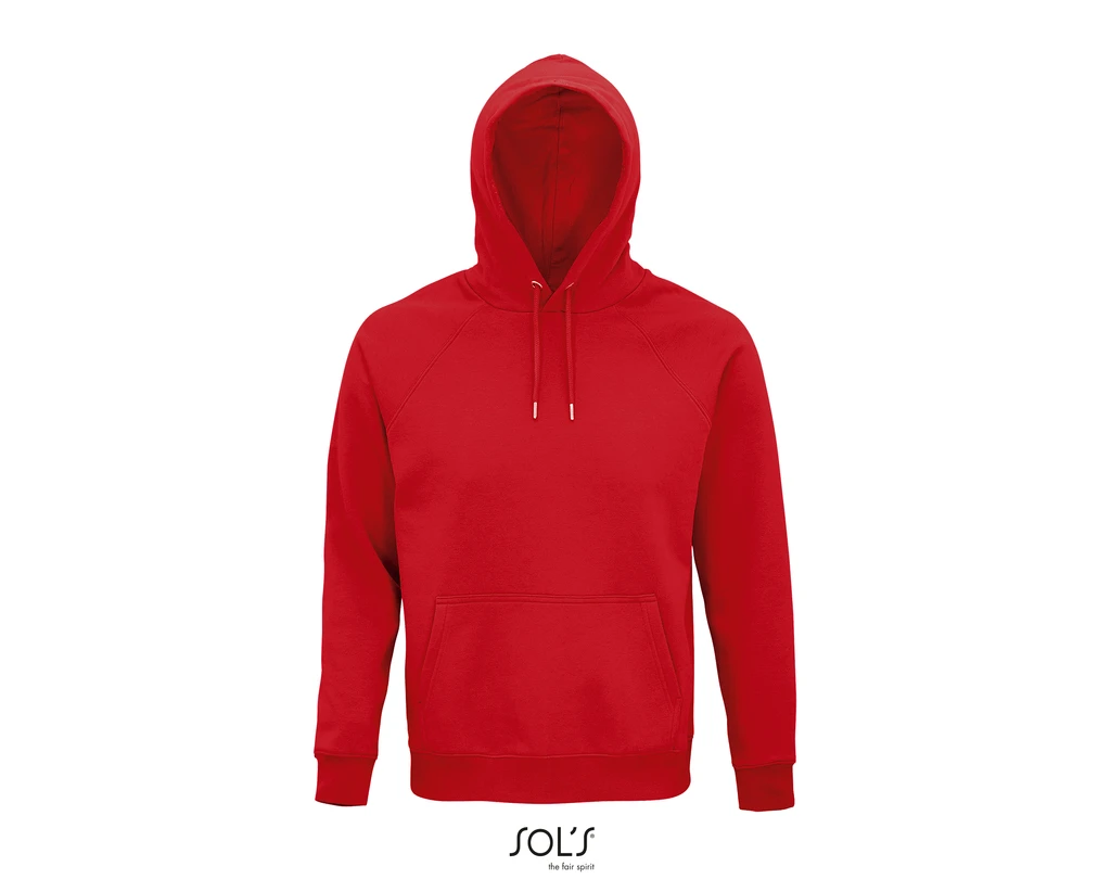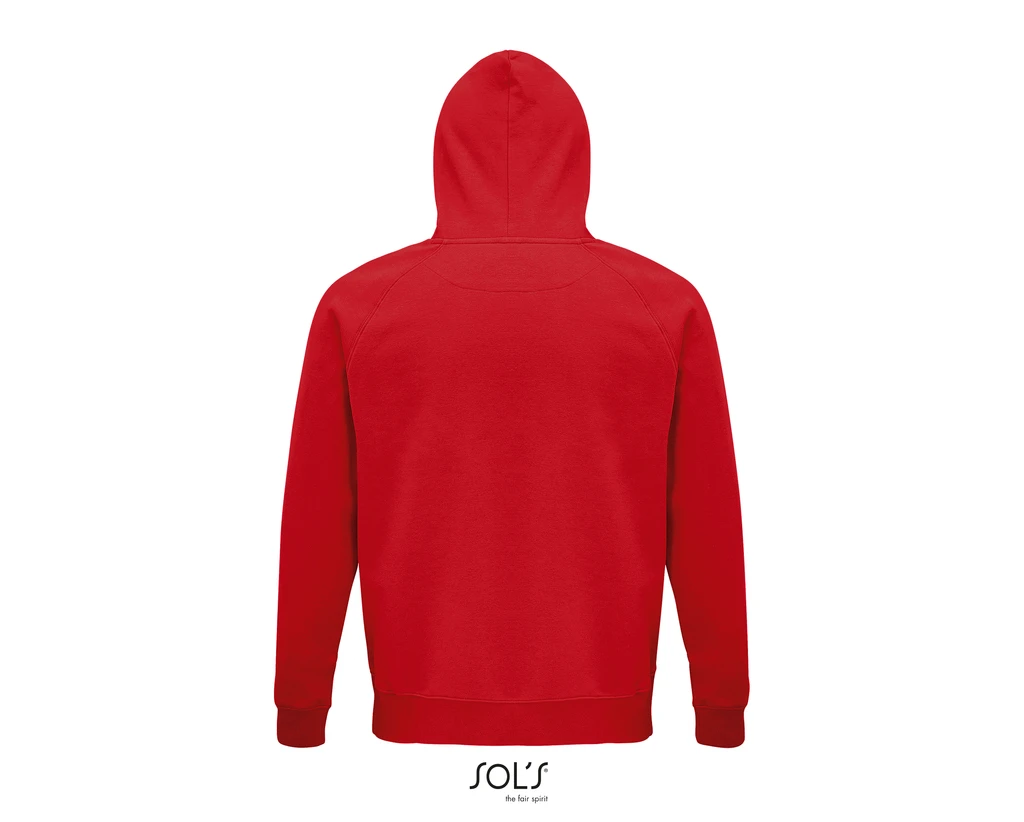 Material: FLEECE 280 - 80% organically grown cotton - 20% recycled polyester, 3 yarns, brushed lining, outside: 100% organic cotton; Cut and sewn, Raglan sleeves, 2x2 ribbed cuffs and hem, half moon inside collar, neck tape, drawstring with metal eyelets and stoppers, Jersey lined hood