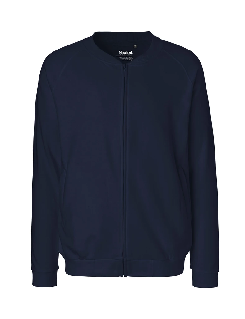 Material: 100% Organic Fairtrade Cotton, Fleece, brushed inside; Weight: 300gsm; Casual fit, raglan sleeves. Hidden YKK-zipper at front. Side pockets, Neck Tape. Rib knitted sleeve cuffs & waistband. Ringspun combed cotton; Certificates: OEKO-TEX® STANDARD 100, 100% CERTIFIED ORGANIC COTTON, FAIR WEAR, EU ECOLABEL, SA8000, NEUTRAL® RESPONSIBILITY